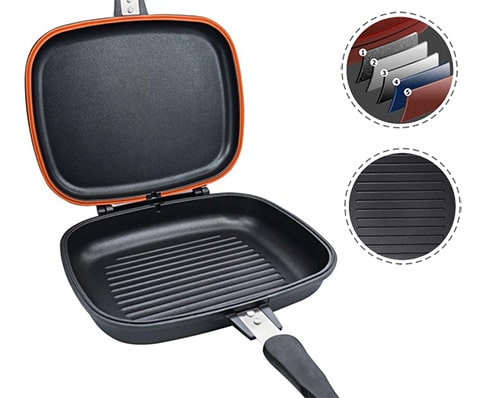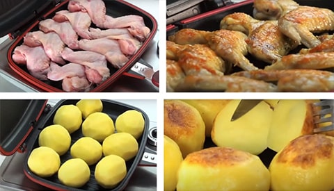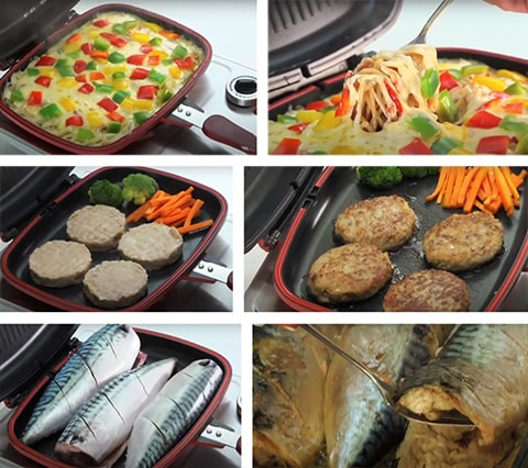 Дві частини сковороди дозволяють рівномірно обсмажувати їжу з двох боків, просто перевернувши сковороду. Вам не доведеться щоразу використовувати лопатки та виделки!