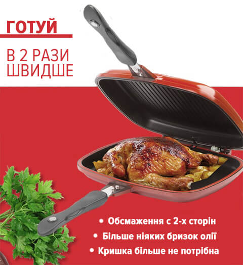 ДВОСТОРОННЯ СКОВОРОДАДЛЯ ГРИЛЯ І ОБСМАЖЕННЯ